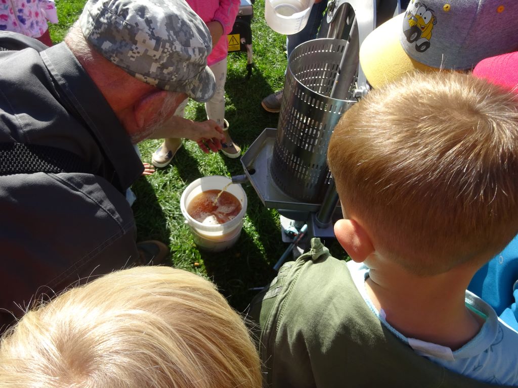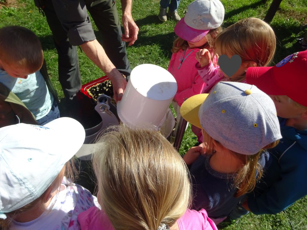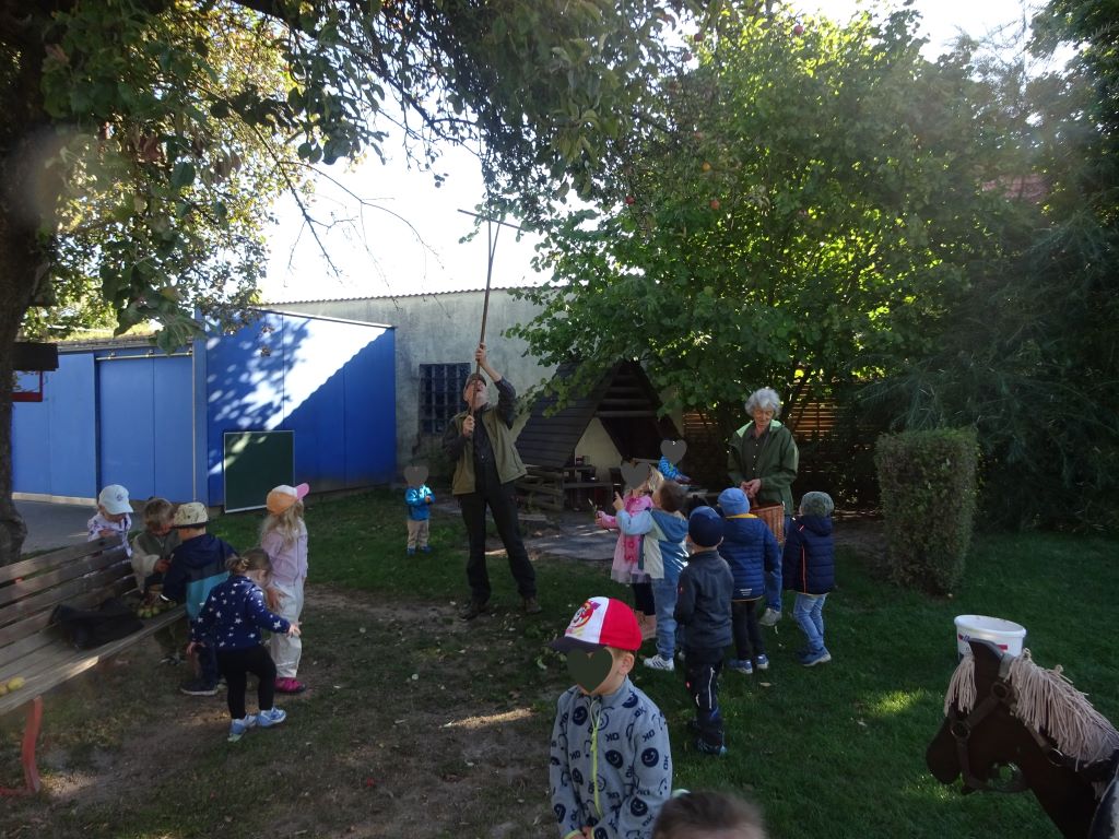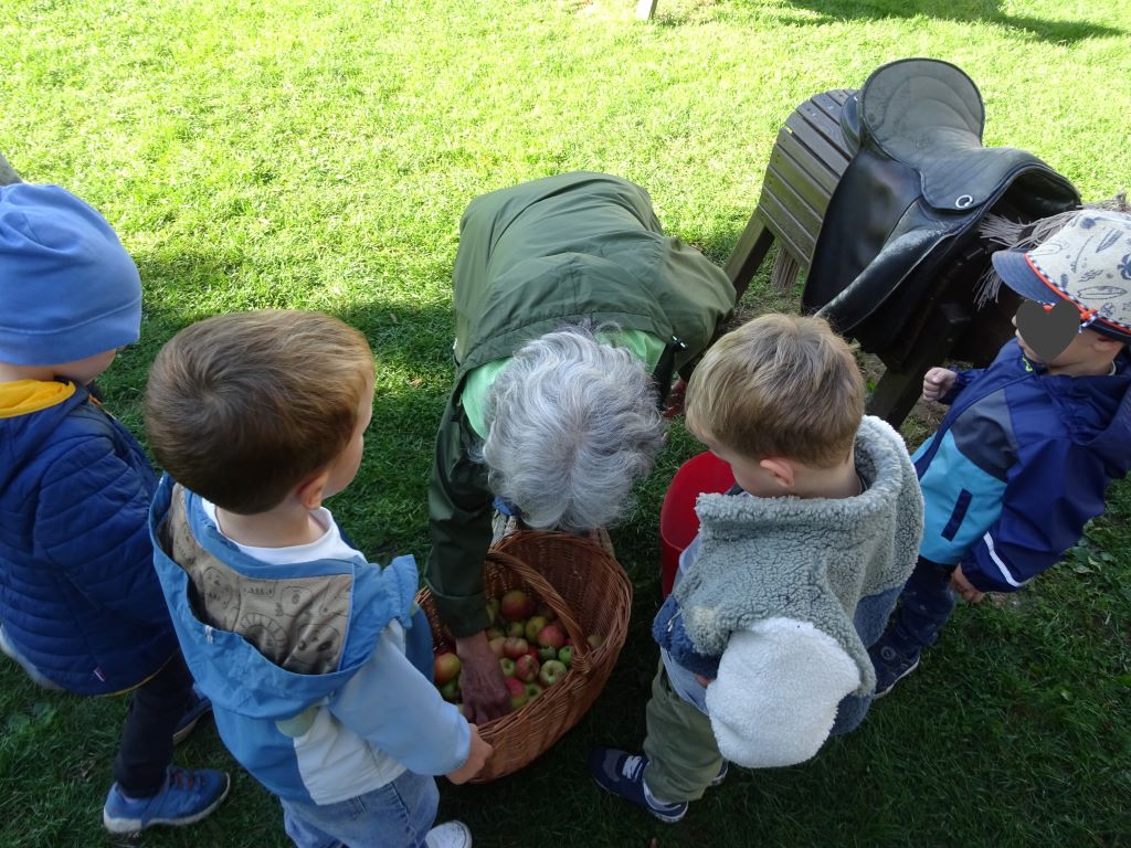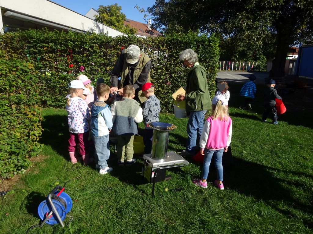 Aus den Äpfeln des Baumes in unserem Kindergarten haben wir Saft gemacht. Mit Hilfe der Großeltern unserer Erzieherin Lena W. haben die Kinder die Äpfel eingesammelt, gewaschen, in den Schnitzler und dann in die Presse gegeben. Heraus kam naturtrüber Apfelsaft. Dieser wird jetzt noch gekocht und abgefüllt. Ab Montag gibt es den leckeren Apfelsaft als Schorle hier im Kindergarten. Tolle Aktion! Danke!